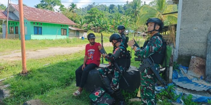 Wonggi, Papua — Wujud kepedulian dan kedekatan dengan masyarakat kembali ditunjukkan oleh personel Satgas Yonif 123/Rajawali Pos Wonggi. Mereka turut membantu proses
