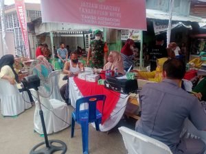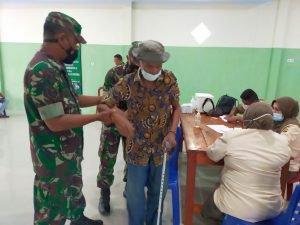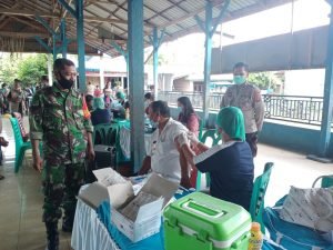 Medan Benteng | Babinsa Koramil 0201-16/TM Kodim 0201/Medan Serma Amirullah melakukan pendampingan dan memantau kegiatan Vaksinasi Bertempat Di Parkiran pasar tradisional Tanjung