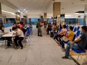 Medan Benteng | Babinsa Kelurahan Tanjung Rejo Koramil 0201-06/MS, Serma Bambang dan Sertu Rokim melaksanakan pendampingan serbuan vaksin bertempat di Mall Manhattan