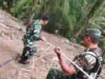 STM Hulu – Setelah menuruni lereng curam dengan bantuan seutas tali, Dansatgas TMMD ke-121 TA 2024 Kodim 0204/Deli Serdang, Letkol Inf Alex