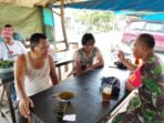 Namorambe, Serka Aris Babinsa Koramil 0201-14/PB melakukan Komsos dengan Warga di wilayah binaan melaksanakan Komsos bersama Warga binaannya di salah satu warung