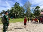 Kerrom – Satuan Tugas Pengamanan Perbatasan (Satgas Pamtas) Statis RI-PNG Yonif 131/BRS menerima kunjungan Tim Puldata Ditrah Komhan Ditjen Strahan Kemhan di