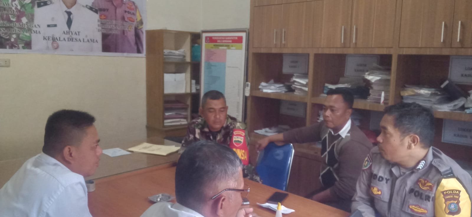 Babinsa Desa lama srk Jumingan didampingi Kepala dusun 1 Misriadi dan babinkamtibmas desa lama membicarakan tentang keamanan dan kenyamanan warga di desa lama dan meminta keterangan kepada kepala dusun 1 desa lama dimana tempat tempat yang merisaukan warga desa lama