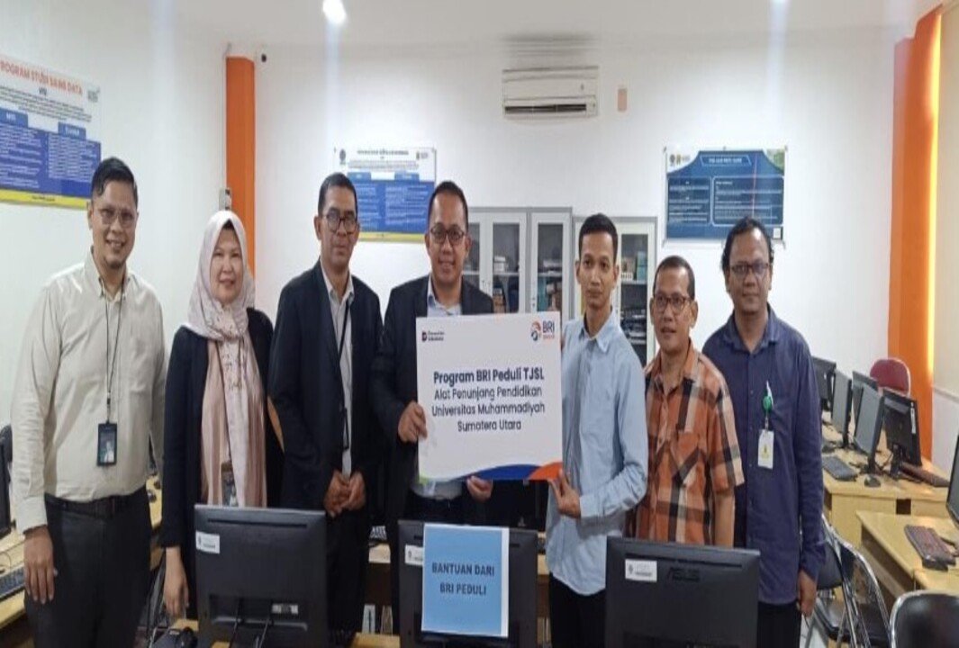 Medan – Dalam rangka memperkuat kontribusi sektor pendidikan dan mendukung digitalisasi pembelajaran di perguruan tinggi, BRI KC Medan Thamrin melalui program BRI Peduli/TJSL menyerahkan bantuan 31 unit PC Komputer Asus Desktop S503MER-7850501WS kepada Universitas Muhammadiyah Sumatera Utara (UMSU), Senin (24/11/25).
