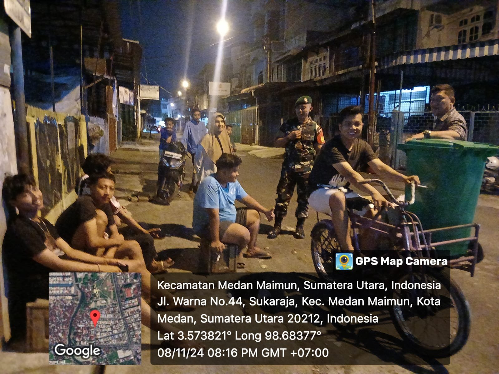 Cegah Terjadinya Kejahatan Malam Hari, Serda R Gulo Aktif Laksanakan Posko Trantibum Bersama Tiga Pilar Kelurahan Sukaraja