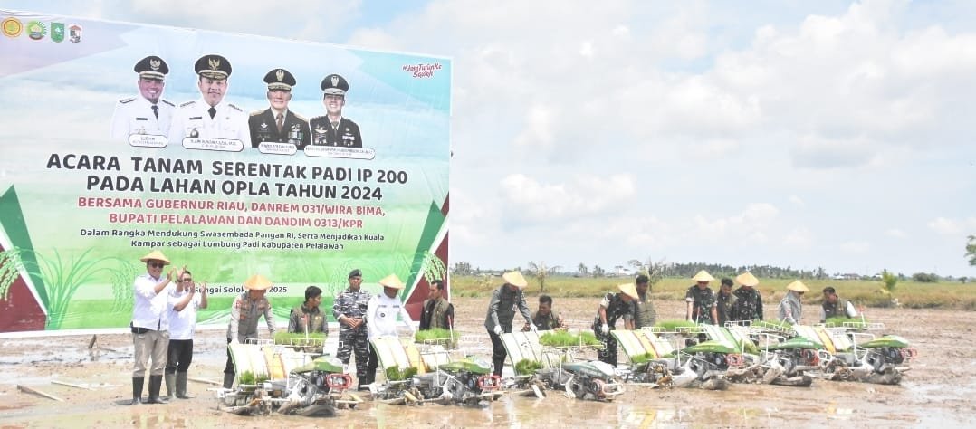 Setelah peninjauan, Danrem turut serta dalam kegiatan tanam padi serentak bersama para petani dan Forkopimda Kabupaten Pelalawan. ”Kegiatan hari ini bukan sekadar seremoni, namun merupakan wujud nyata komitmen bersama antara TNI, Pemerintah Daerah dan masyarakat dalam mendukung program ketahanan pangan nasional. Penanaman padi serentak yang kita laksanakan adalah langkah strategis yang mencerminkan semangat gotong royong dan kolaborasi lintas sektor” jelas Brigjen Sugiyono.