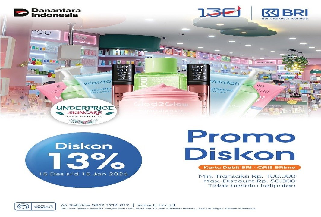 Promo merchant BRI ini berlangsung mulai 15 Desember 2025 hingga 15 Januari 2026, dengan beragam penawaran menarik seperti potongan harga Rp13.000 hingga diskon 13%, khusus bagi nasabah yang bertransaksi menggunakan Kartu Debit BRI maupun QRIS BRImo.