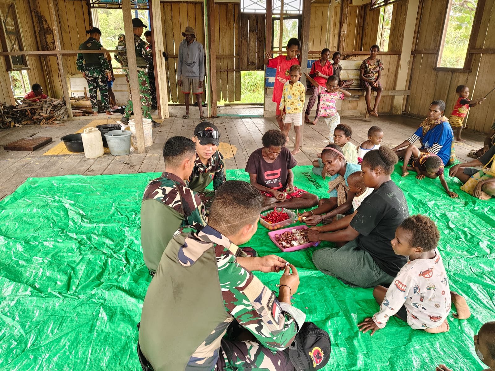 ‎Asmat, Papua Selatan – Suasana penuh kehangatan dan keakraban menyelimuti Kampung Binam, Distrik Suator, Kabupaten Asmat, Provinsi Papua Selatan, pada Jumat (20/03/2026) ini. Dalam rangka mempererat tali silaturahmi dan mewujudkan semangat kebersamaan, Pos Suator dari Satuan Tugas (Satgas) Pengamanan Perbatasan (Pamtas) Kewilayahan Yonif 123/Rajawali menggelar kegiatan Komunikasi Sosial (Komsos) yang diisi dengan acara masak dan makan bersama masyarakat setempat.