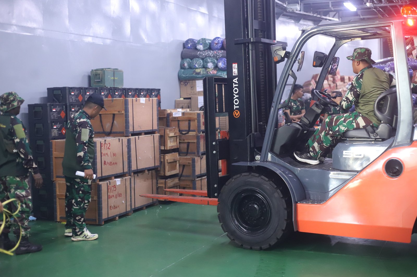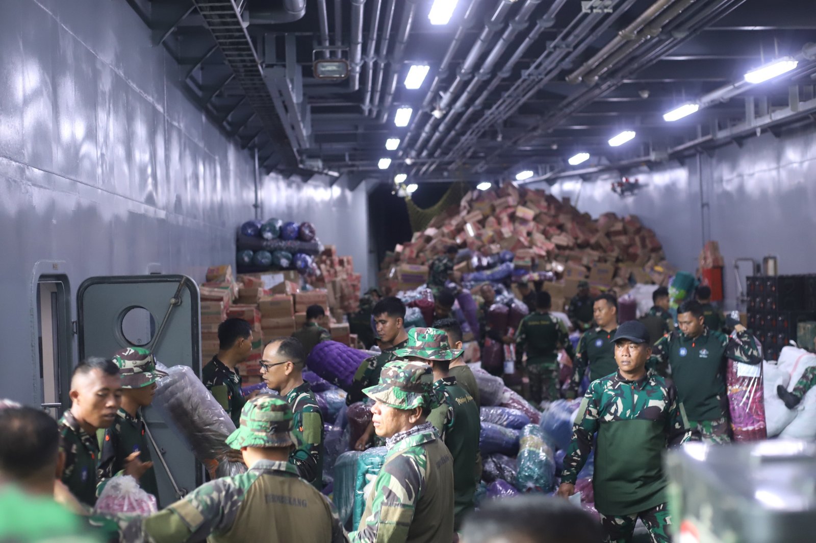 Belawan – Kapal ADRI–XVII BM yang mengangkut bantuan logistik dari Markas Besar TNI Angkatan Darat (Mabesad) tiba di Pelabuhan Belawan, Minggu (7/12/2025). Bantuan tersebut siap disalurkan kepada masyarakat terdampak bencana di wilayah Tapanuli, Provinsi Sumatera Utara.