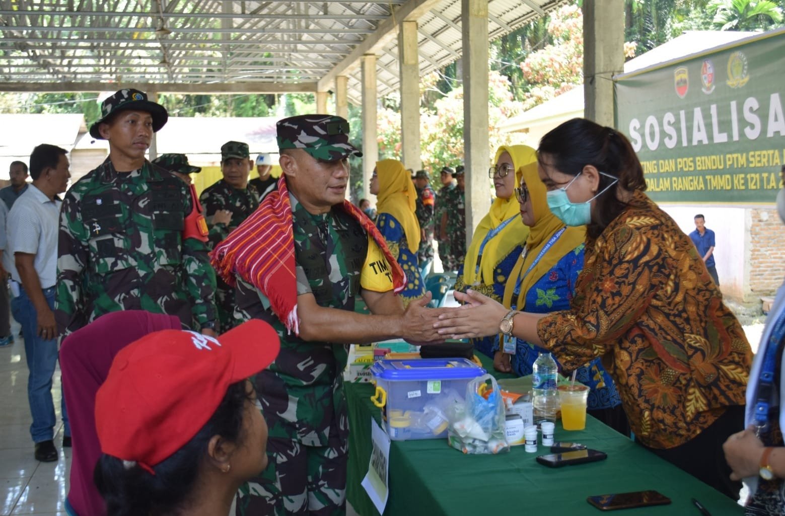 Ketua Tim Wasev TMMD 121 Kodim 0204/DS Tinjau Sosialisasi Pencegahan Stunting dan Posbindu PTM