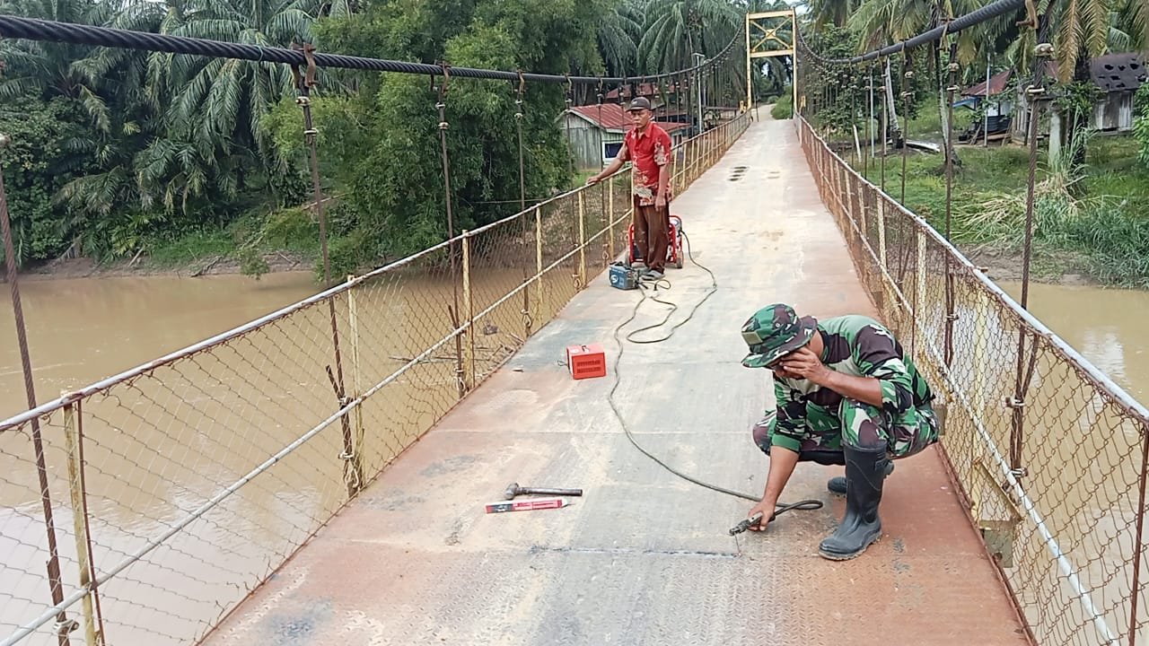 Rehabilitasi jembatan dilaksanakan oleh personel Kodim 0209/LB melalui perbaikan pada bagian yang mengalami kerusakan, meliputi pembongkaran plat lantai, penggantian jaring kawat di sisi kanan dan kiri, pengelasan, serta pengecatan.
