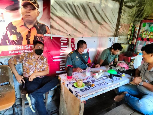 Masih dalam suasana Lebaran Idul Fitri 1443 H, Babinsa Koramil 0201-05/MB Kodim 0201/Medan Peltu M Basri Nst melaksanakan Komunikasi Sosial (Komsos) dengan masyarakat di wilayah binaannya di Kelurahan Sarirejo, Kecamatan Medan Polonia.