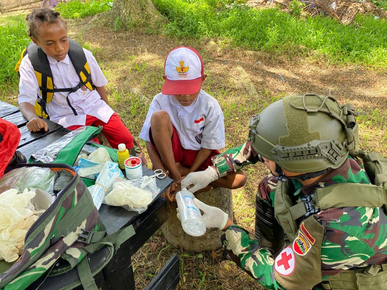 Dalam upaya membantu pemerintah daerah di perbatasan Papua, Satgas Pamtas Yonif 131/BRS menerjunkan Tim kesehatan untuk melaksanakan pengobatan gratis pada masyarakat di kampung kalibom, Distrik Waris Kabupaten Keerom, Papua Selasa (15/10/2024).