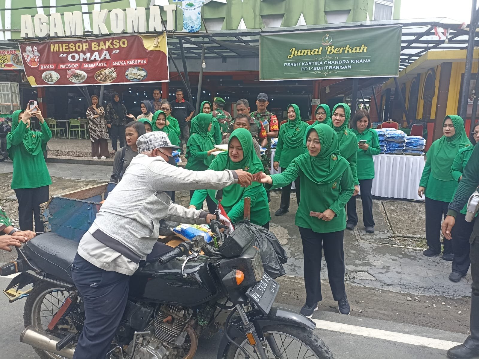 Medan – Persit Kartika Chandra Kirana (KCK) PD I/Bukit Barisan melaksanakan kegiatan sosial Jumat Berkah dengan membagikan paket sembako kepada masyarakat yang membutuhkan. Kegiatan ini berlangsung di halaman depan Café Agam Komat, Jalan Amaliun No.3, Kelurahan Kotamatsum III, Kecamatan Medan Kota. Jum’at (15/08/2025)