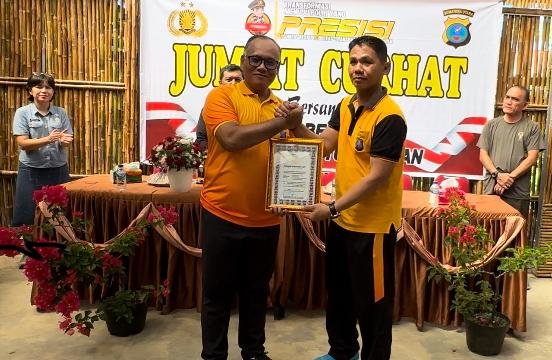 MEDAN – Kapolrestabes Medan Kombes Pol Gidion Arif Setyawan memberikan reward (penghargaan) kepada Kapolsek Medan Tuntungan, Iptu Eko Sanjaya, Jumat (25/4/2025).