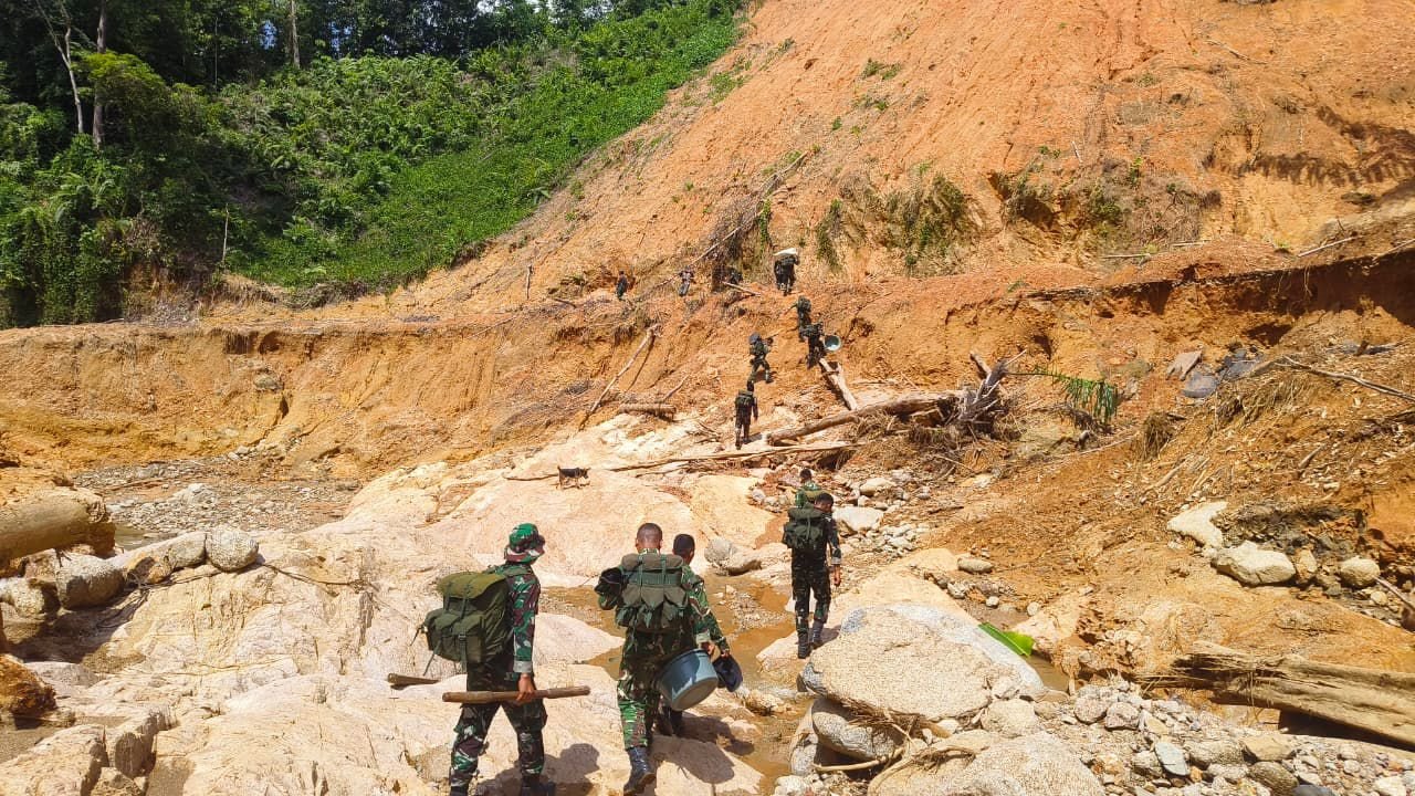 Tapanuli Tengah — Satgas Penanggulangan Bencana (Gulbencal) Kodam I/Bukit Barisan yang dipimpin Dandim 0211/Tapanuli Tengah Letkol Inf Bayu Hanuranto Wicaksono, S. H. Int, M. H. I. melaksanakan patroli jalan kaki sekaligus pembagian logistik ke wilayah terisolir Desa Si Giring-Giring, Kecamatan Tukka, Kabupaten Tapanuli Tengah, Minggu (28/12/2025).
