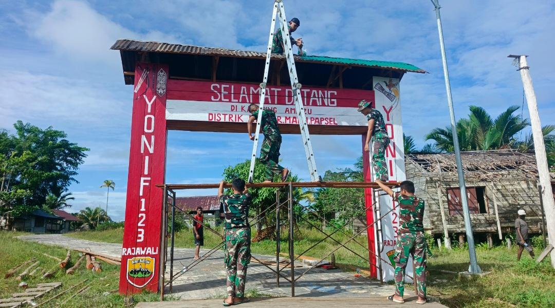Khaibar – Satuan Tugas (Satgas) Yonif 123/Rajawali yang berada di pos Khaibar kembali menunjukkan dedikasi dan pengabdiannya kepada masyarakat melalui pembangunan dermaga dan gapura di Pos Khaibar. Kegiatan ini merupakan bagian dari upaya TNI dalam membantu percepatan pembangunan di wilayah penugasan.