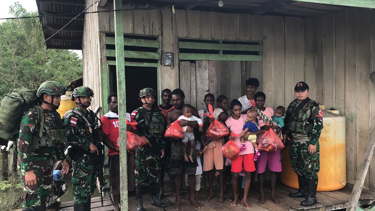 Dalam sebuah aksi peduli kemanusiaan, Pos Suator Satgas Yonif 123/Rajawali melaksanakan pembagian sembako di Kampung Emnam, Distrik Suator, Kabupaten Asmat. Kegiatan ini bertujuan membantu masyarakat yang terdampak banjir yang sudah lebih dari 5 bulan belum surut.Jumat,(03/10/2025).