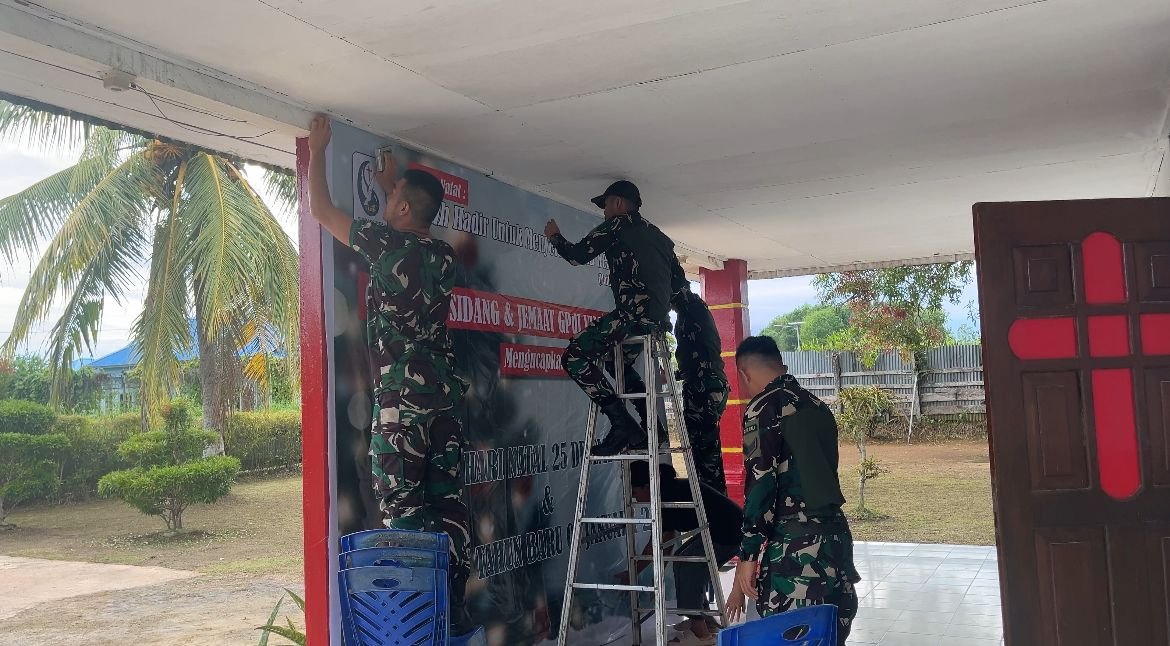 Satgas Yonif 123/Rajawali Bantu Persiapan Natal di Gereja GPDI Viadolorosa Bade