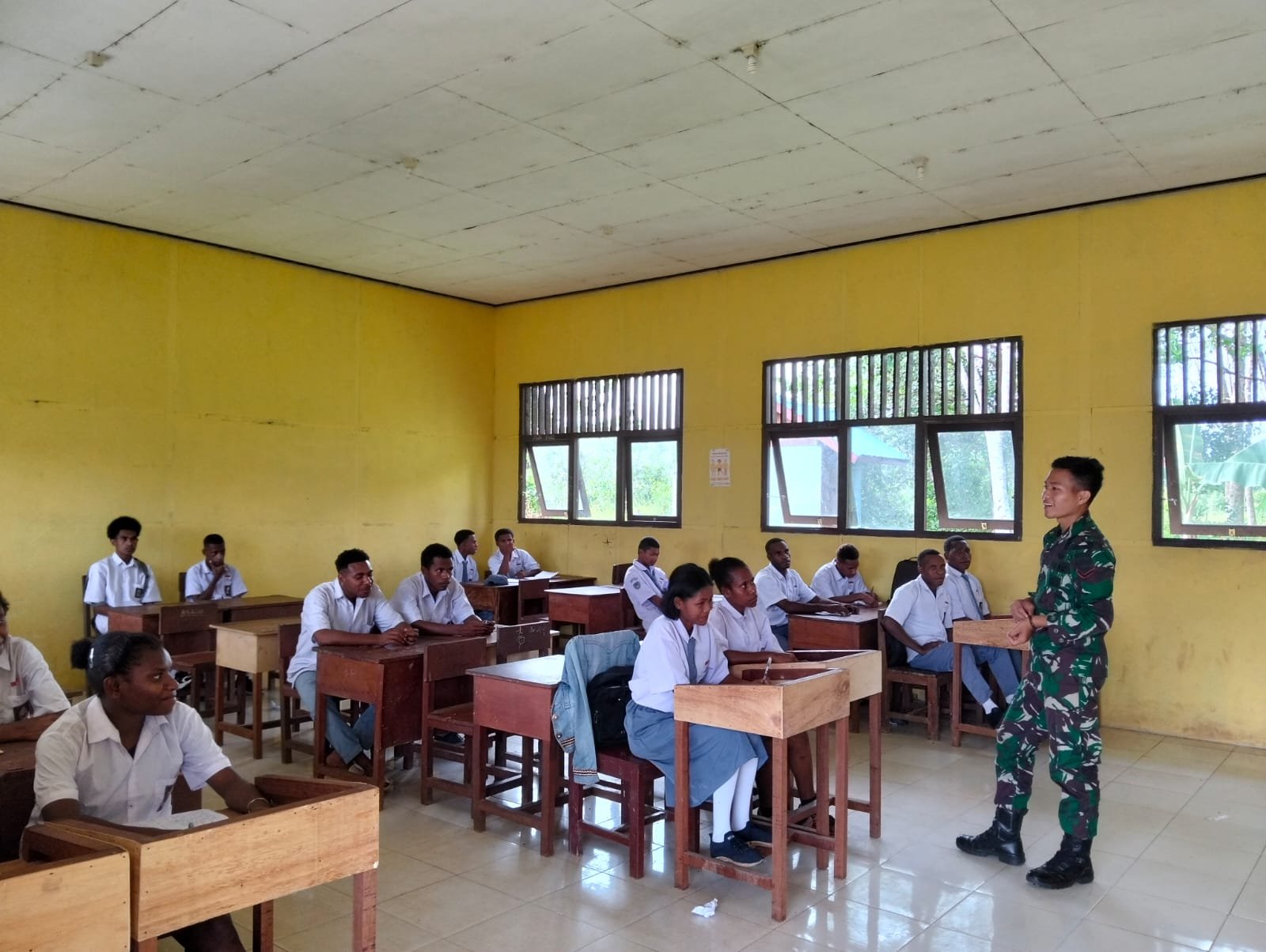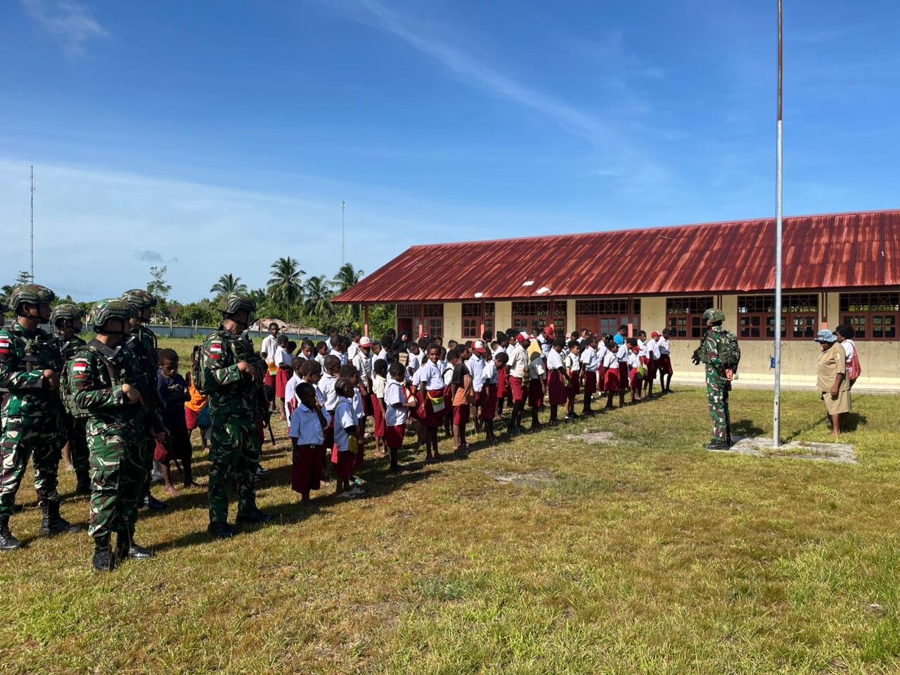 Papua Selatan – Senin, 19 Januari 2026 – Satuan Tugas Yonif 123/Rajawali melaksanakan program bantuan pendidikan berupa pemberian ilmu yang layak di Pos Haju, Tomor, Bade, dan Kaibar, dengan materi yang disesuaikan kebutuhan masing-masing sekolah mulai dari IPA, matematika, bahasa Indonesia, keterampilan menulis, komputer, hingga sejarah dan pendidikan karakter.