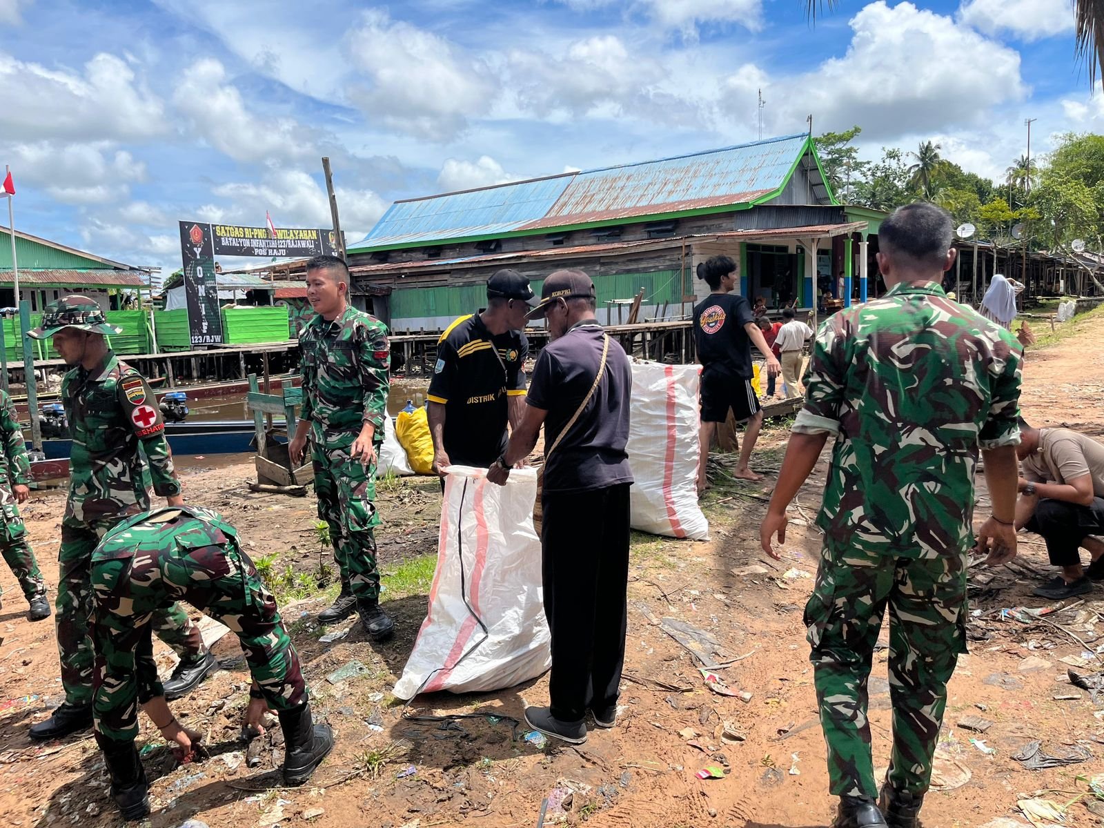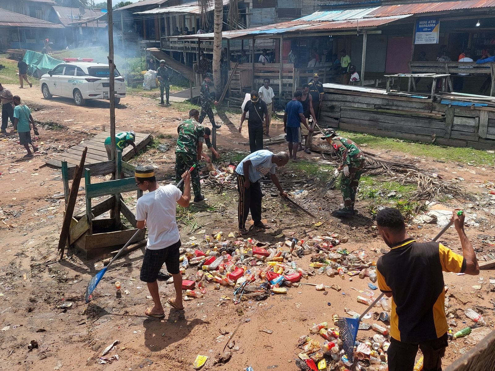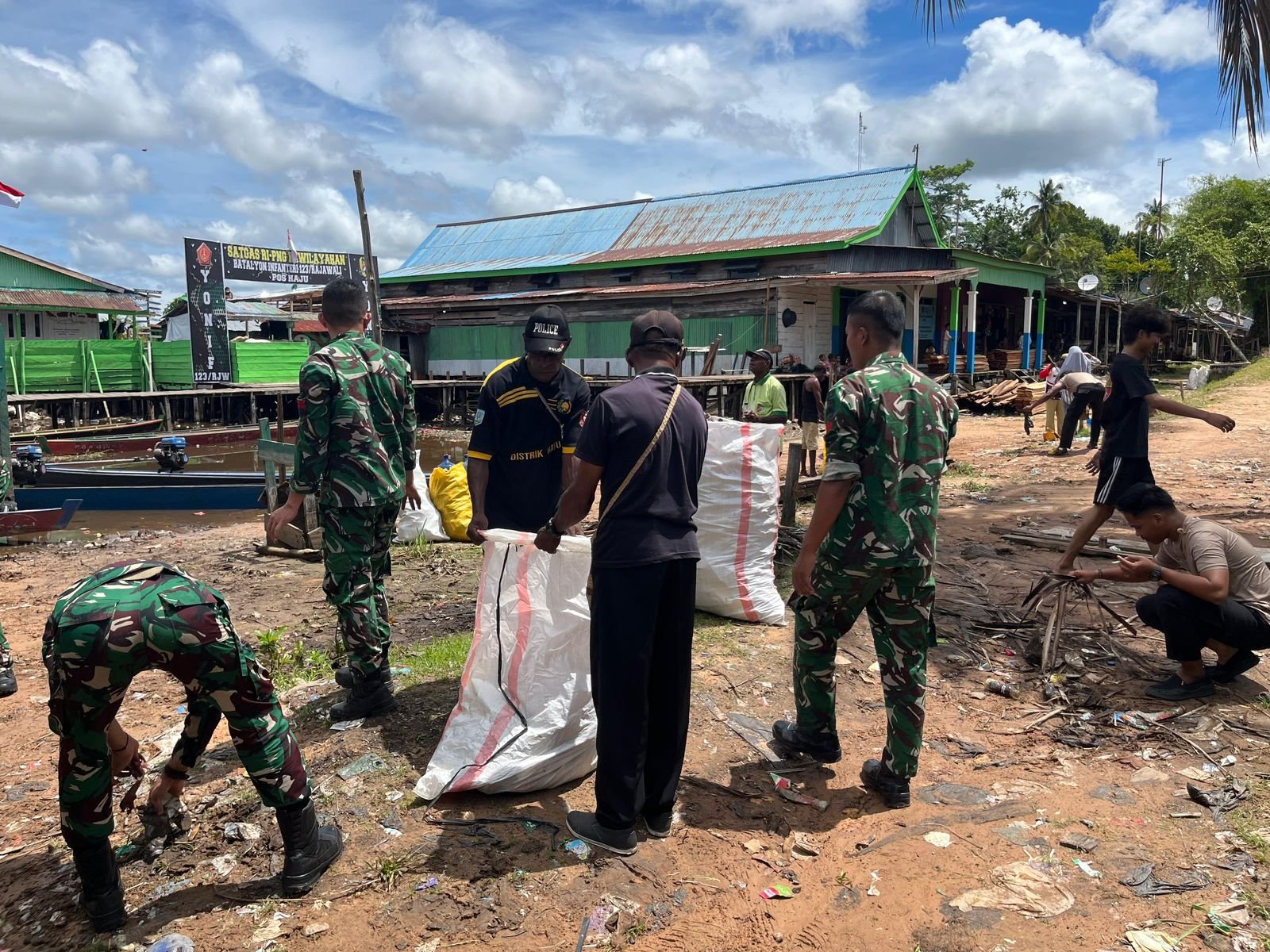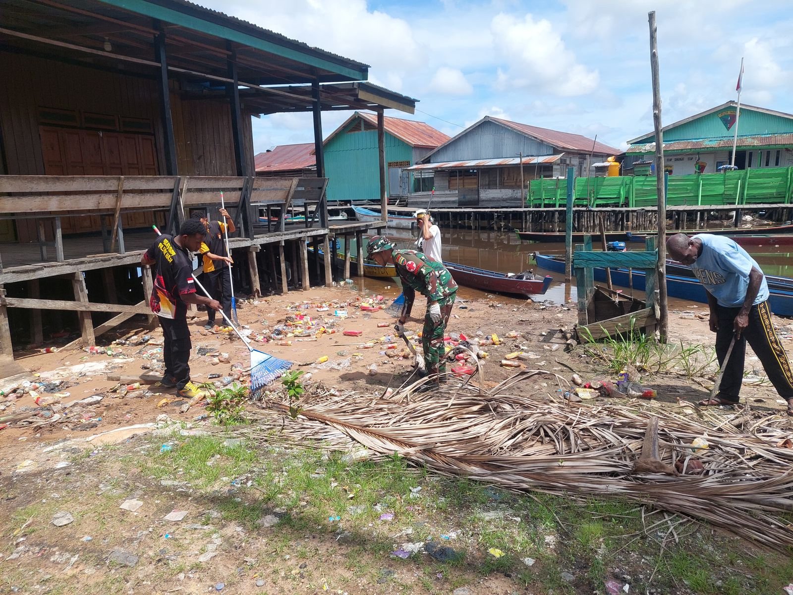 Sasaran utama pembersihan adalah area pasar dan pelabuhan Distrik Haju, dua titik yang menjadi pusat aktivitas masyarakat sehari-hari. Personel satgas bersama warga bergotong royong membersihkan sampah, merapikan fasilitas umum, serta memastikan lingkungan tetap nyaman dan sehat.