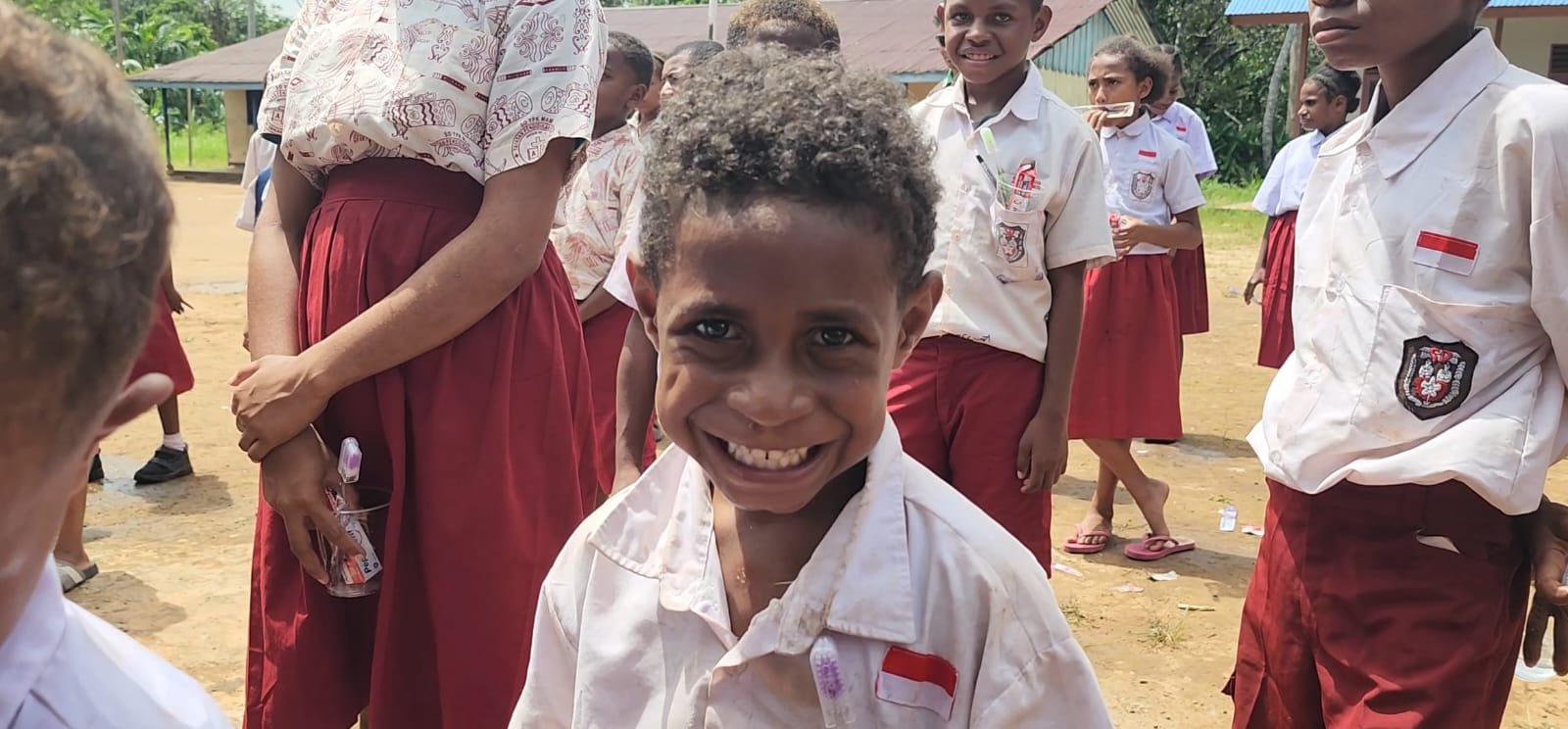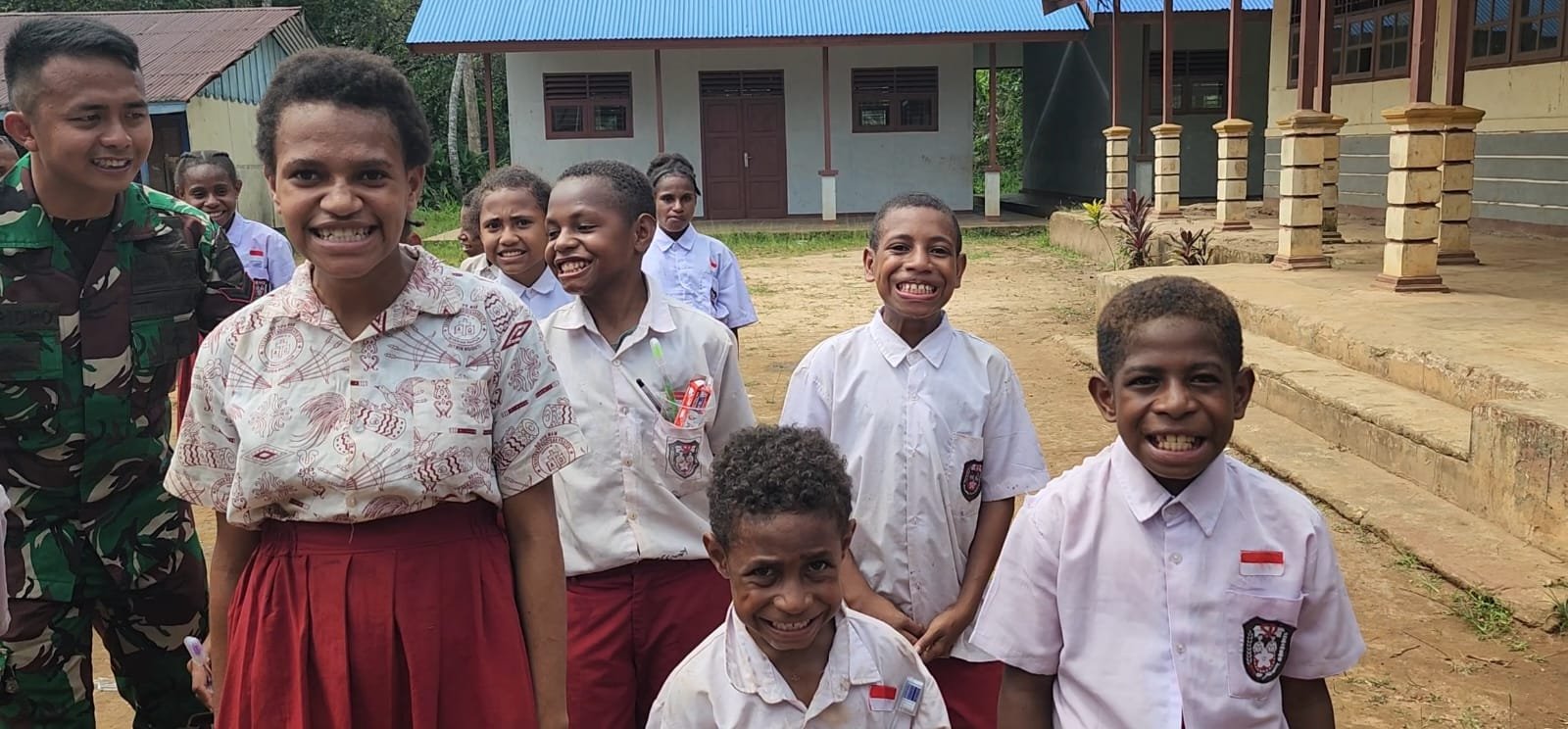 ‎Para anggota Pos Bade dengan penuh keceriaan menggelar kegiatan edukasi kesehatan gigi dan mulut kepada anak-anak Sekolah Dasar (SD) Mememu di Distrik Edera. Gak cuma sekadar kasih tahu, tapi mereka langsung praktik mengajarkan cara menyikat gigi yang benar, Dengan sabar dan ramah, personel Pos Bade mendemonstrasikan teknik menyikat gigi yang tepat, mulai dari gerakan memutar hingga menjangkau seluruh permukaan gigi. Anak-anak SD pun antusias mengikuti setiap langkahnya.