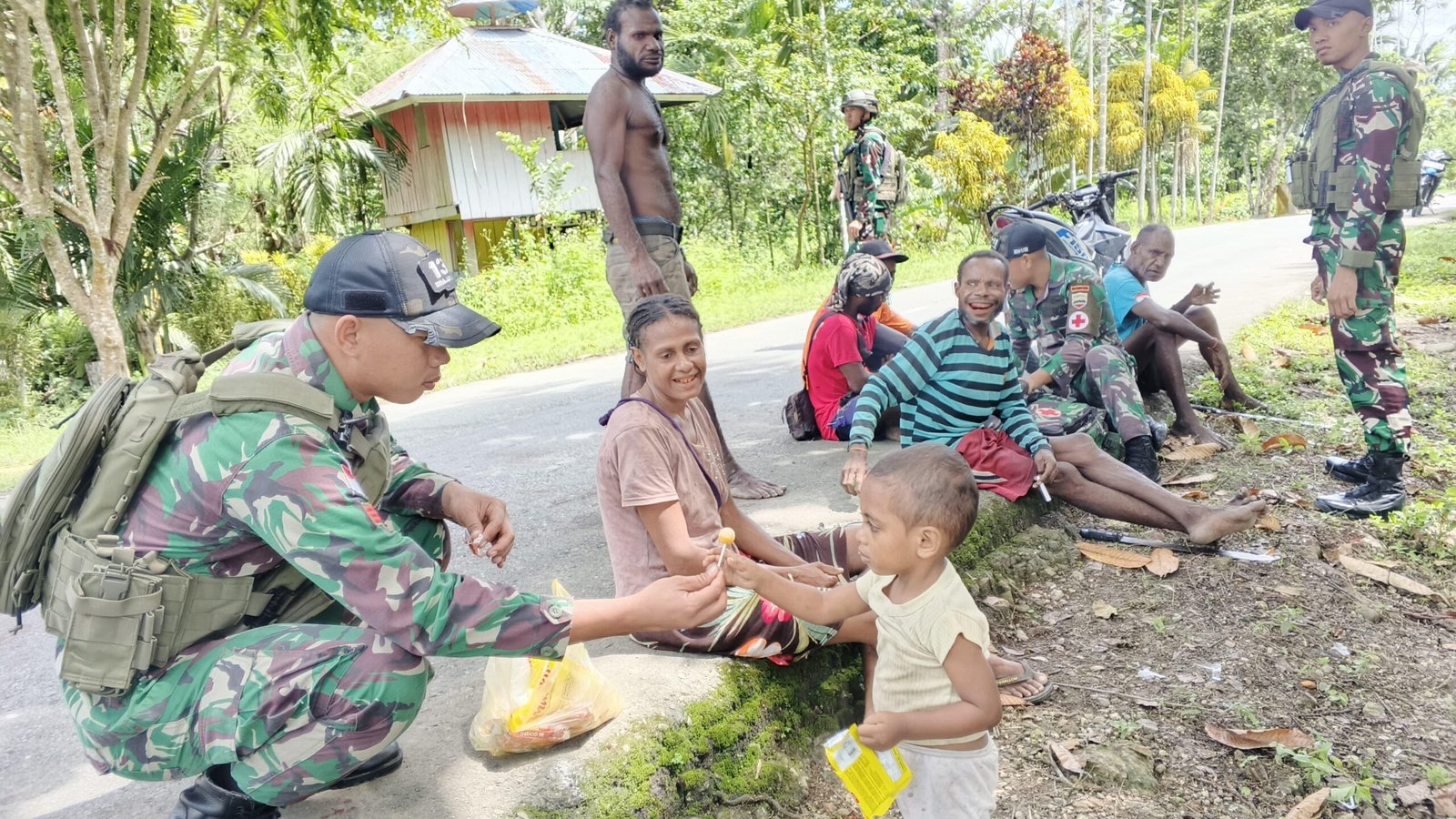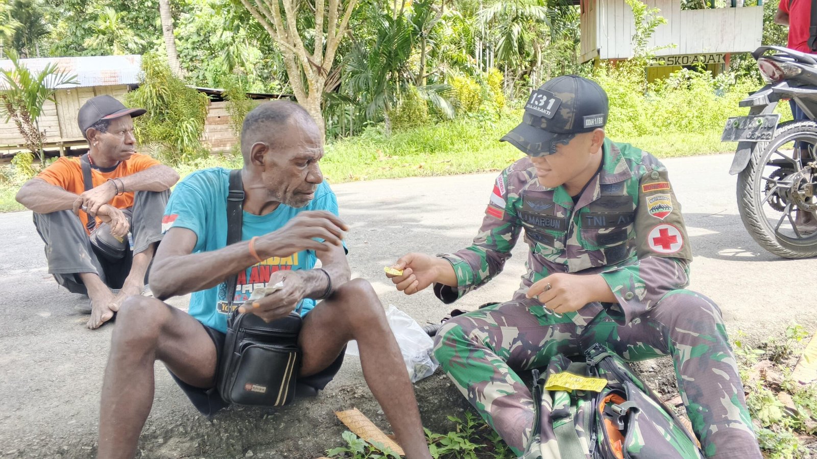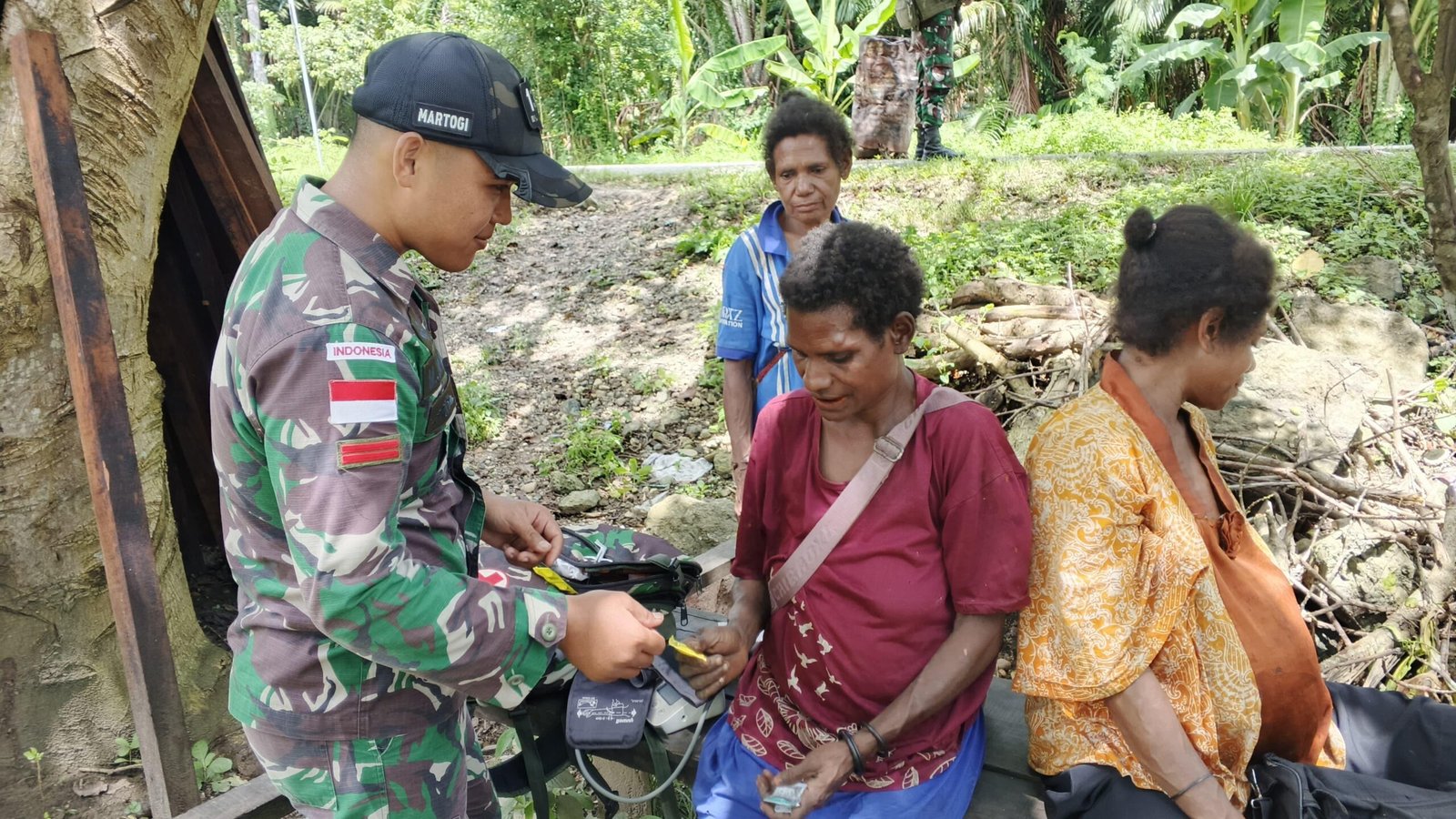 Dipimpin oleh Letda Ckm Dedy Damanik, personel Pos Sawiyatami turun langsung dari rumah ke rumah untuk memeriksa kesehatan warga, memberikan obat, serta berdialog hangat dengan masyarakat.