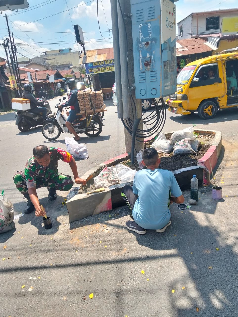 Kegiatan ini Dilakukan sebagai wujud kepedulian Babinsa Terhadap Lingkungan Serta peranya di Wilayah Binaan.Untuk Membantu Pengecatan Trotowar Di jl Bayangkara Lingkungan 13 Kelurahan Indrakasih Kecamatan Medan Tembung Jum,at 06/09/2024.