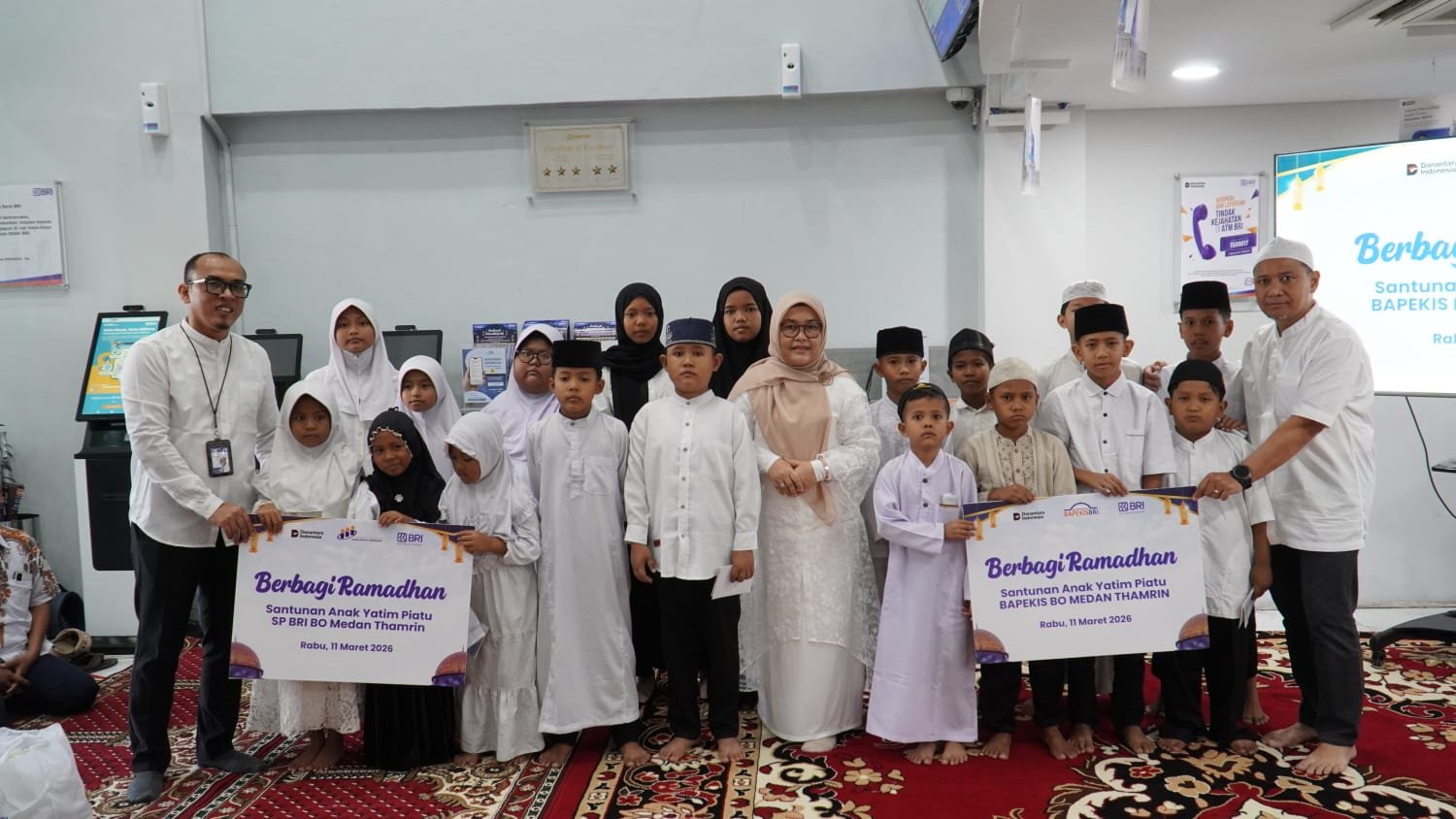 Medan – BRI Branch Office Medan Thamrin bersama Badan Pembina Kerohanian Islam (BAPEKIS) BRI BO Medan Thamrin dan Serikat Pekerja BRI BO Medan Thamrin, mengadakan “Acara Berbagi Ramadhan” dengan serangkaian acara Memberikan santunan dan bantuan sembako kepada Anak-anak Yatim Piatu dan Pekerja sekaligus Buka Puasa Bersama.