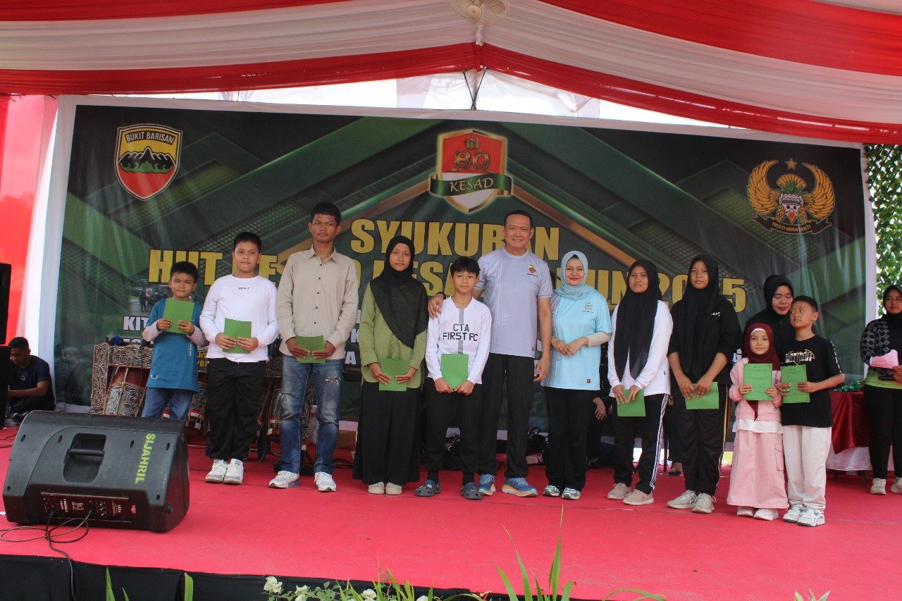 Sebagai wujud kepedulian sosial, kegiatan syukuran juga diisi dengan pemberian tali asih kepada anak-anak yatim dari keluarga besar Kesdam I/BB, yang menambah makna kebersamaan dan semangat berbagi dalam peringatan hari bersejarah ini.