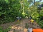 Pesisir Selatan- Satgas TMMD ke 121 Kodim 0311 Pesisir Selatan bersama masyarakat bahu membahu gotong royong membersihkan bahu jalan Batu Tagak yang