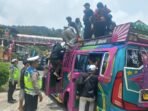 Berastagi, Karo – Satlantas Polres Tanah Karo kembali menindak tegas supir angkutan lintas kabupaten yang menaikkan penumpang di atas atap kendaraan. Insiden