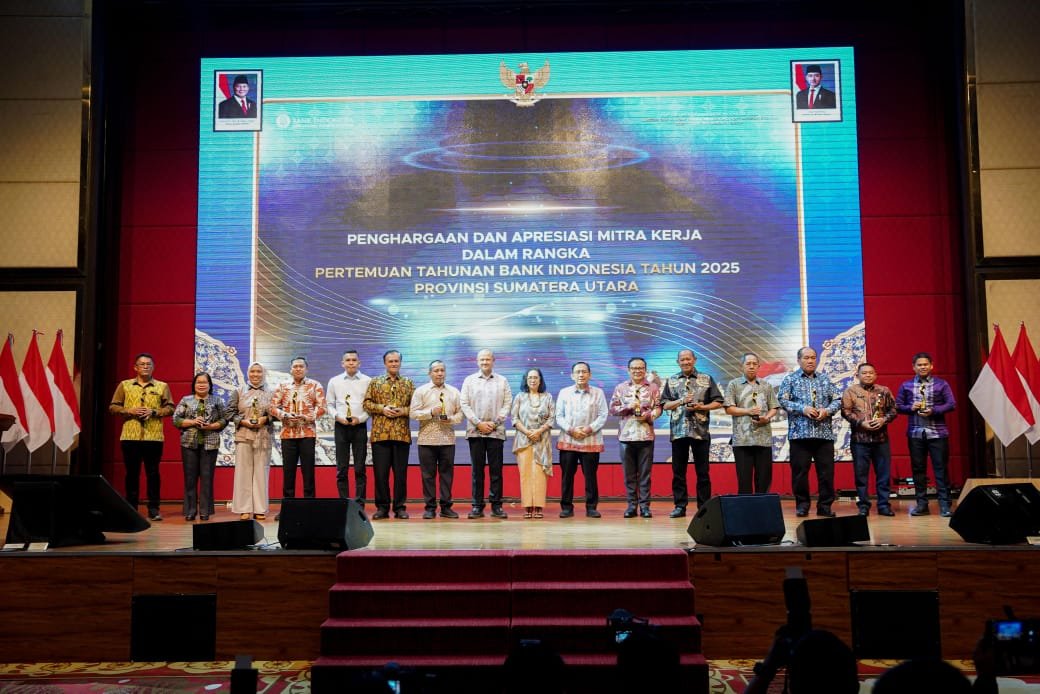 MEDAN, Di tengah ketidakpastian bencana banjir yang sedang dihadapi warga Langkat, Bupati Langkat, Syah Affandin yang kerap disapa Ondim hadir menerima penghargaan, di acara Penghargaan dan Apresiasi Mitra Kerja Dalam Rangka Pertemuan Tahunan Bank Indonesia (BI) Tahun 2025 Provinsi Sumatera Utara, di Hotel Adimulia Medan, Jumat (28/11) malam.