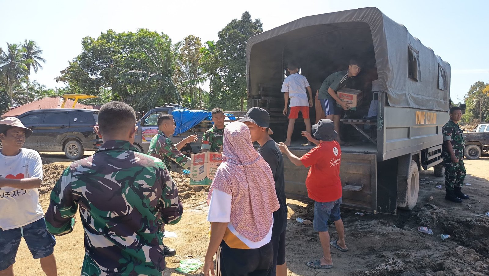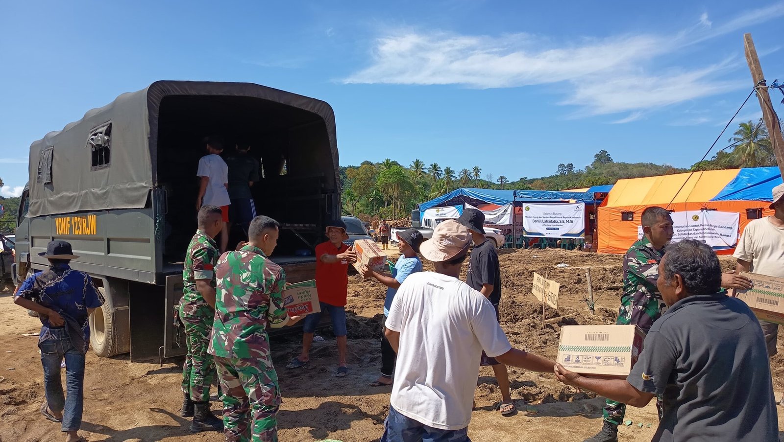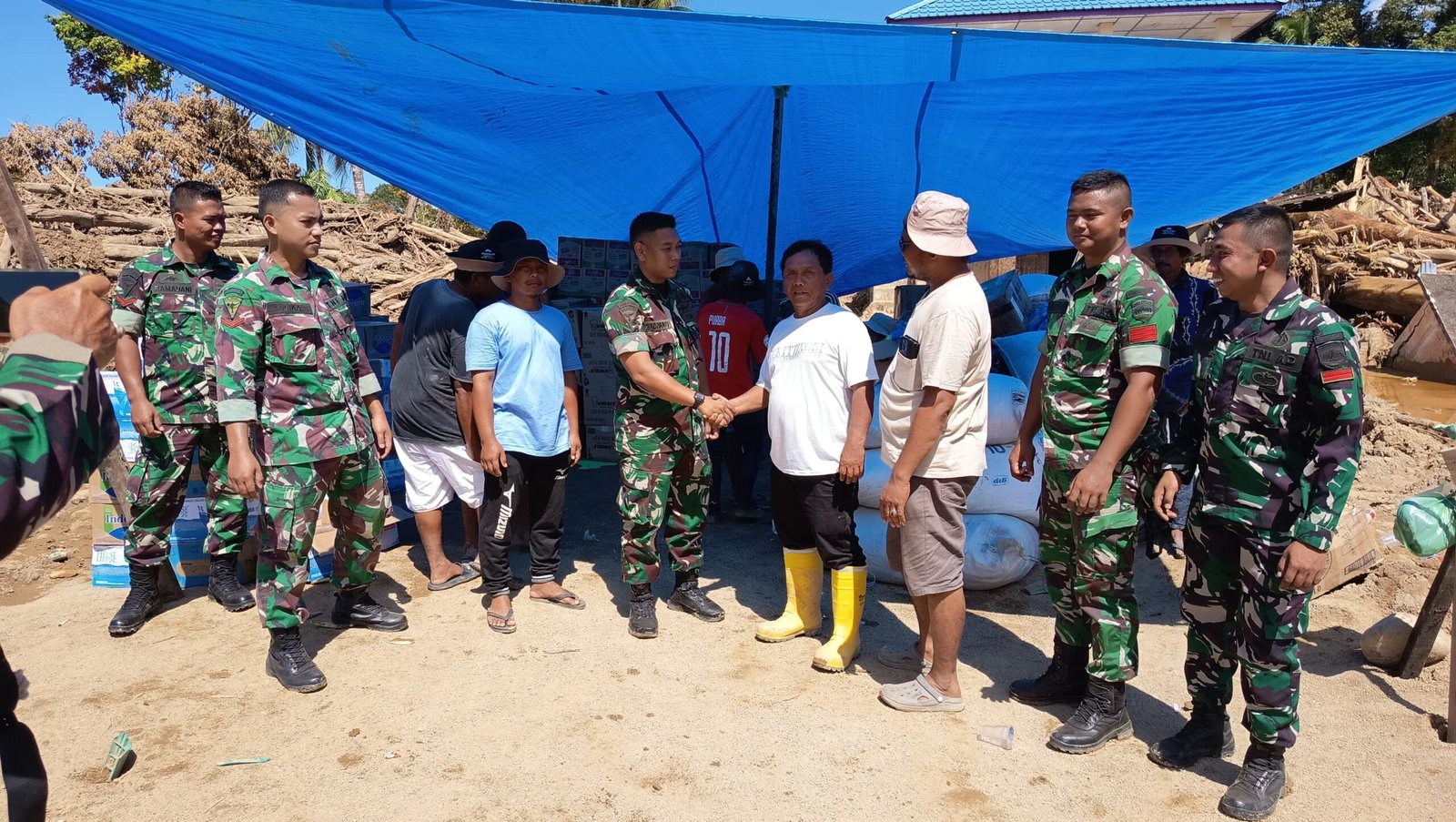 Yonif 123/Rajawali Serahkan Bantuan Logistik untuk Korban Banjir Bandang di Posko Bantuan Banjir Bandang